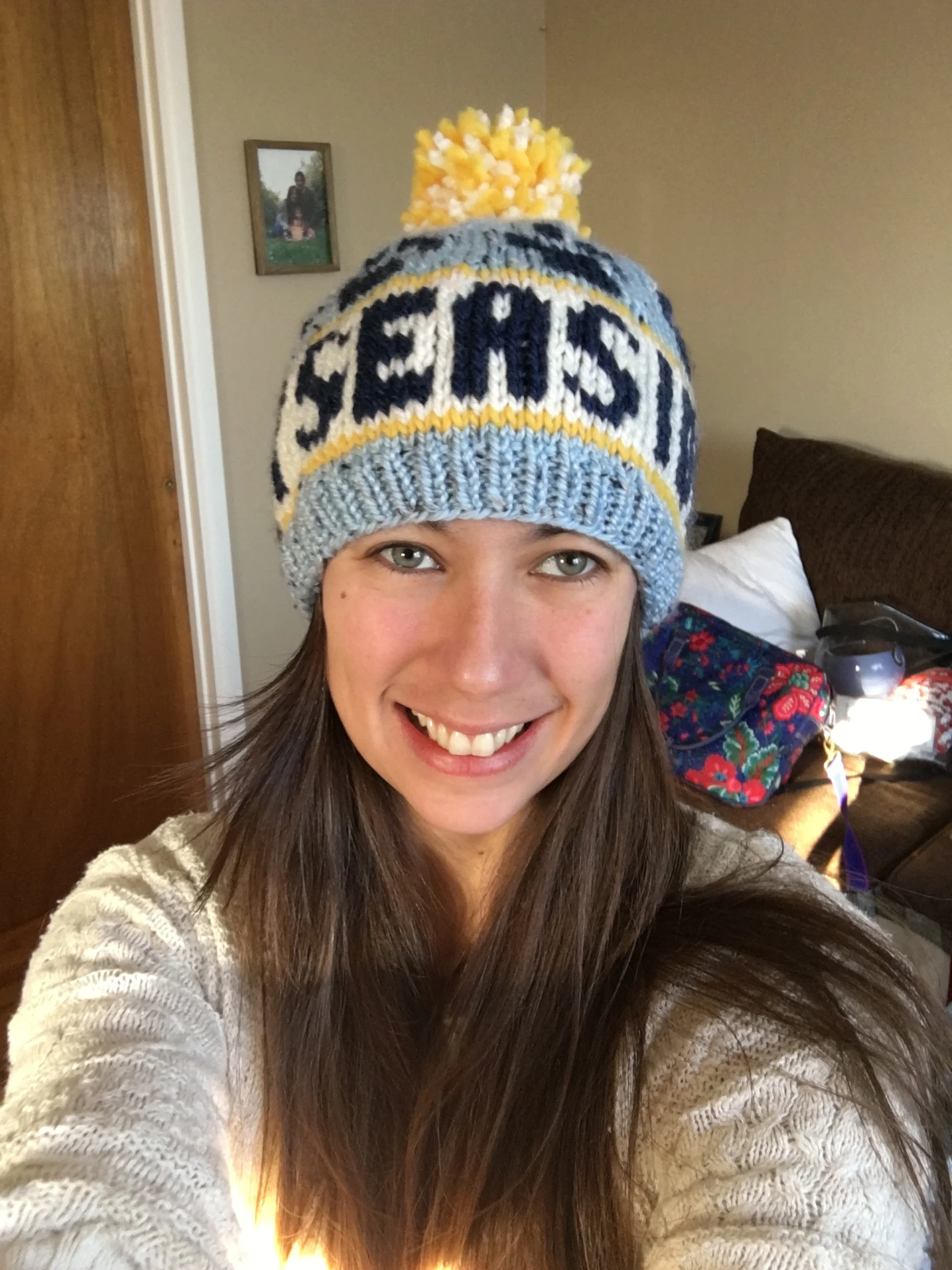 Repping my business with a hat knit by my wonderful mother-in-law!